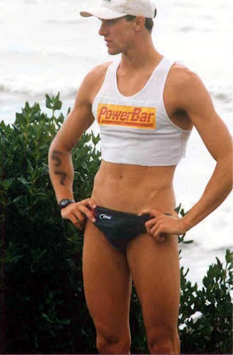 Any combination of bikini, thong, or squarecut with a tight, cropped tank top, or midriff. And sneakers. Something about the combination of skimpy spandex swimwear and sneakers gets me boned up big time! Like so: