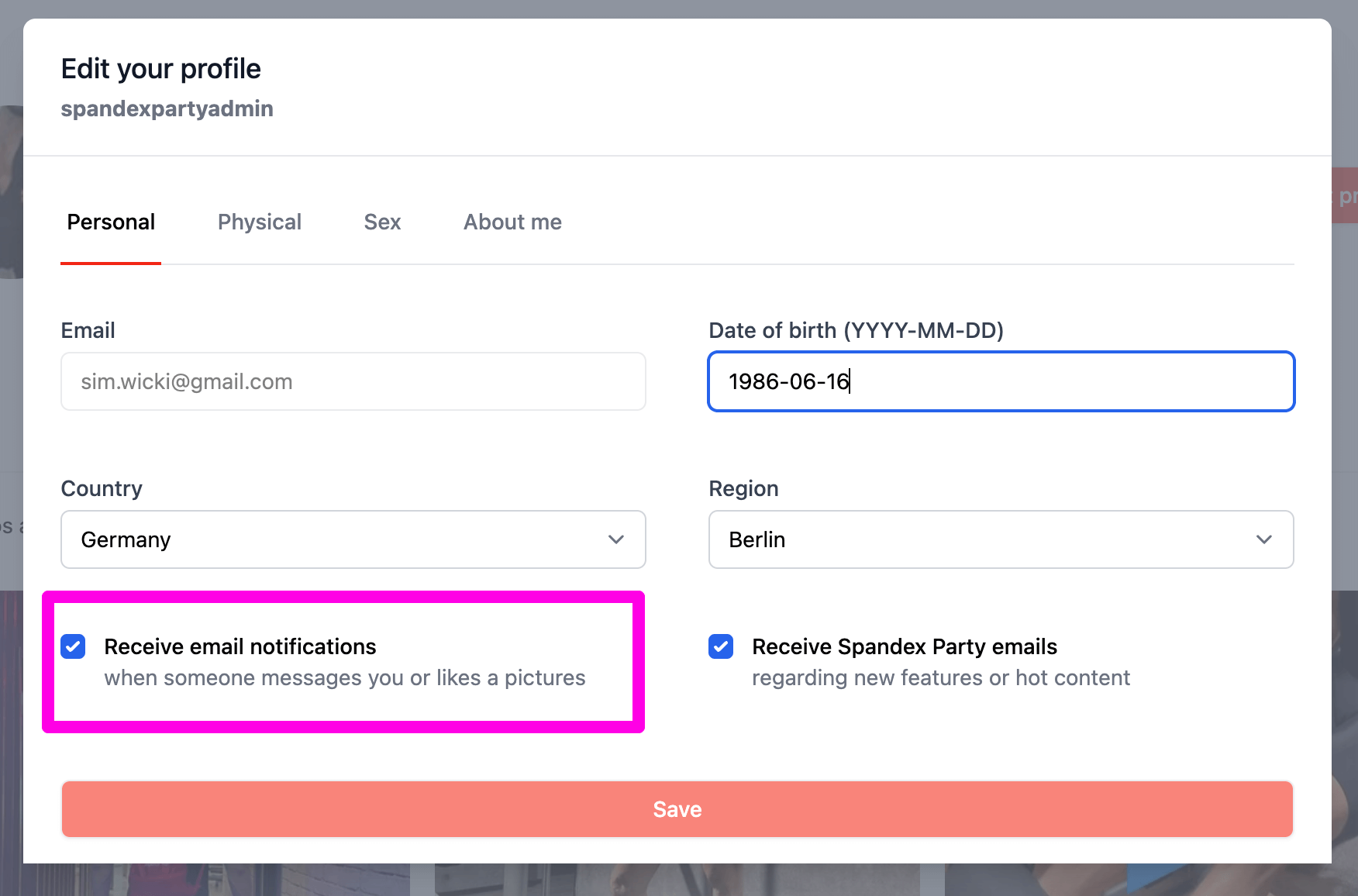 I would suggest if we can turn it off it would have been a great feature - there are people who used their email address to sign up might want to maintain discreet when using Spandex Party.